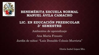 Este documento describe un jardín de niños que atiende a niños de 3 a 6 años, incluyendo aquellos con necesidades educativas especiales. Se trabajan competencias básicas y se han obtenido buenos resultados a través de estrategias de gestión que permiten brindar servicios de apoyo. El jardín de niños es una fuente de trabajo para maestros.