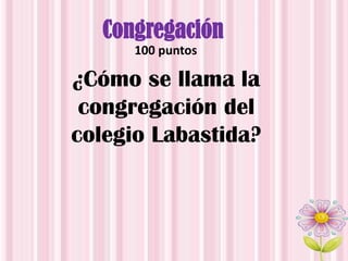 El documento proporciona información sobre la Congregación de las Hijas de María Inmaculada de Guadalupe, fundada por José Antonio Plancarte y Labastida. La congregación se fundó originalmente como Congregación de Hijas de María Inmaculada el 2 de febrero de 1878. Atienden asilos, hospitales y escuelas. El documento también proporciona detalles sobre Plancarte y Labastida y el Colegio Labastida.