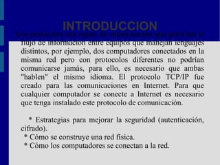 Los protocolos de red son conjuntos de reglas que permiten que las computadoras se comuniquen a través de una red. Algunos protocolos comunes incluyen TCP/IP, el cual es fundamental para la conexión a Internet, así como IPX/SPX, NetBIOS y AppleTalk. Los protocolos especifican cómo establecer conexiones, formatos de mensajes, detección y corrección de errores y más.