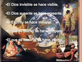 El documento proporciona información sobre la vida de Jesús, haciendo preguntas y proporcionando respuestas sobre su nombre, padres, lugar de nacimiento, edad cuando comenzó su ministerio público, número de apóstoles y discípulos, y edad en la que murió. También incluye gráficos sobre la importancia de conocer a Jesús y creer en él.