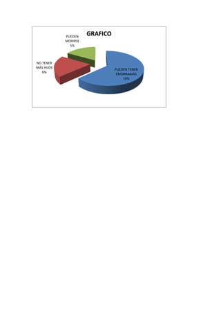 El documento discute cómo prevenir el aborto entre mujeres y niñas que han sido violadas. Sugiere crear un centro de rehabilitación donde se les pueda aconsejar sobre las consecuencias del aborto y animarlas a continuar con el embarazo, ya que el aborto puede causar hemorragias, infertilidad o incluso la muerte.
