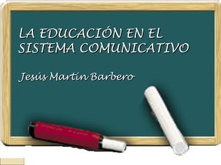 Este documento discute la necesidad de que el sistema educativo se adapte a los cambios en el sistema de comunicación con la irrupción de los medios. Plantea que la escuela tradicional se centra demasiado en el libro y descuida otros medios, lo que genera un desfase con la sociedad. Propone que la escuela debe interactuar con los nuevos medios para formar ciudadanos críticos, convertirse en un espacio para nuevos saberes no lineales, y emerger nuevos roles para los maestros.