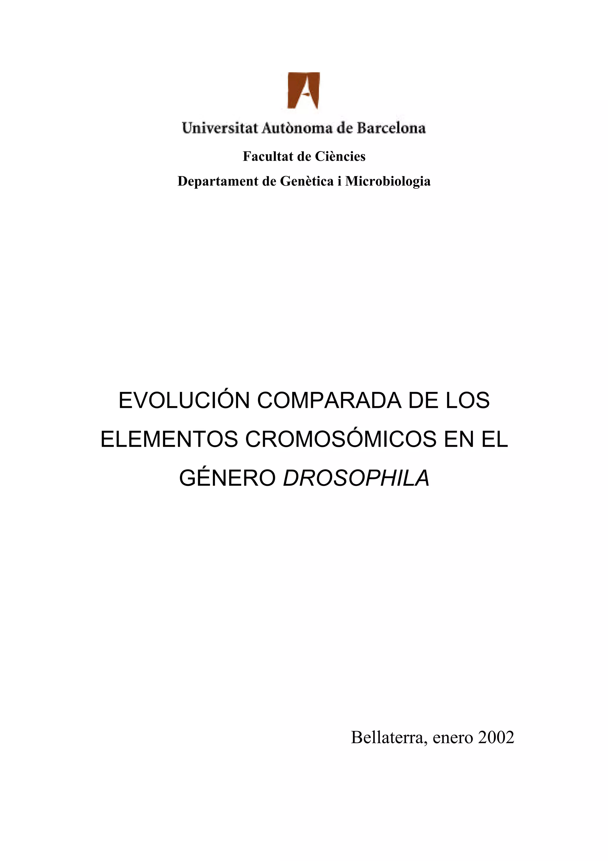 Este documento presenta la memoria de Josefa González Pérez para obtener el título de Doctora en Ciencias Biológicas. El trabajo de investigación realizado bajo la dirección del Dr. Alfredo Ruiz Panadero comparó la evolución de elementos cromosómicos enteros y una pequeña región cromosómica en especies del género Drosophila para estimar tasas y patrones de evolución cromosómica y reconstruir la organización de genomas ancestrales.