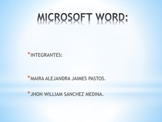 Este documento proporciona información sobre Microsoft Word. Explica que Microsoft Word es un procesador de texto poderoso creado por Microsoft que permite la creación de documentos. Describe algunas funciones básicas como guardar, abrir y editar documentos. También menciona algunas ventajas como facilitar la edición y visualización de textos y ser compatible con diferentes formatos y herramientas.