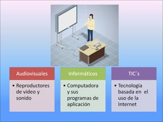 Los recursos educativos y medios didácticos facilitan el proceso de enseñanza-aprendizaje al crear un mejor ambiente y hacer las actividades en clase más interesantes para los alumnos. Se deben integrar las nuevas tecnologías como los medios didácticos informáticos y de la información y la comunicación en la labor docente para innovar la metodología de enseñanza. Los profesores deben enseñar a los alumnos a evaluar críticamente la información en internet y facilitarles herramientas para usarla