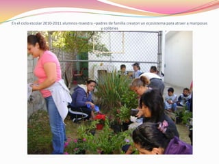 Los estudiantes de un jardín de niños crearon un ecosistema para atraer mariposas y colibríes. Observando las orugas hasta que se convirtieron en mariposas y luego liberándolas, los niños aprendieron sobre el ciclo de vida de las mariposas. Sin embargo, muchas de las orugas no sobrevivieron debido a la falta de alimento o fueron infectadas por avispas.