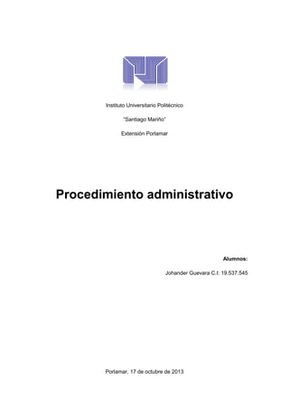 El documento describe las fases del procedimiento administrativo, incluyendo la iniciación, instrucción y finalización. Explica que los procedimientos pueden iniciarse de oficio o a instancia de parte, e incluyen actos de instrucción y audiencia. El procedimiento termina con una resolución motivada o mediante silencio administrativo.