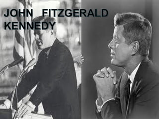 John F. Kennedy nació en 1917 y fue el trigésimo quinto presidente de Estados Unidos, sirviendo desde 1961 hasta su asesinato en 1963. Tuvo un papel decisivo en la carrera espacial y los derechos civiles, pero enfrentó desafíos con sus propuestas. Fue asesinado por Lee Harvey Oswald en Dallas, Texas, aunque permanecen incógnitas sobre posibles conspiraciones detrás del asesinato.
