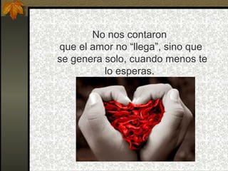 No nos contaron queel amor no “llega”, sino que se genera solo, cuando menos te lo esperas.