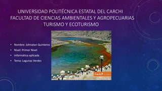 Las Lagunas Verdes se encuentran en la provincia de Carchi, Ecuador, a unos 7-24 km de los centros urbanos más cercanos de Tufiño y Tulcán. Consisten en tres lagunas permanentes y varios lagos estacionales ubicados a 3982 msnm en la base del volcán Chiles. Están rodeadas de paisajes rocosos y montañosos típicos del páramo, con vegetación como frailejón, pajonal y quishuar. Albergan fauna como patos silvestres, perdices y pequeños mamí