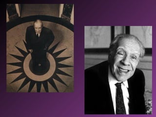 Este documento presenta una biografía del escritor argentino Jorge Luis Borges. Detalla eventos clave en su vida como su vocación temprana por la escritura, sus viajes por Europa y obras publicadas. También incluye secciones sobre su estilo literario, el cual se caracterizaba por cuentos cortos y bien estructurados que exploraban temas metafísicos. Finalmente, presenta un poema suyo titulado "Ajedrez" y un comentario sobre el mismo.