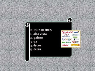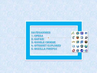 El documento habla sobre diferentes tipos de servidores como servidores de audio y video, servidores de chat, servidores de fax y servidores de FTP. También menciona redes sociales como Friendster, Oikut, Linke In y Facebook. Discute la utilidad de los blogs tanto para el autor como para el receptor y algunos programas utilizados como www.slideshare.com, www.flashvortex.com y www.voki.com. Finalmente, menciona a Alberto Peña como creador de blogs.
