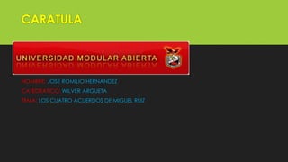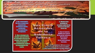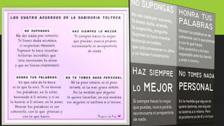 Los Cuatro Acuerdos de Miguel Ruiz se basan en antiguas enseñanzas toltecas. Los cuatro acuerdos son: 1) Sé impecable con tus palabras y no hables mal de los demás; 2) No te tomes nada personal; 3) No hagas suposiciones; 4) Haz siempre lo mejor que puedas. Siguiendo estos acuerdos, podemos liberarnos de las limitaciones impuestas por nuestros sueños y alcanzar la verdadera libertad personal.