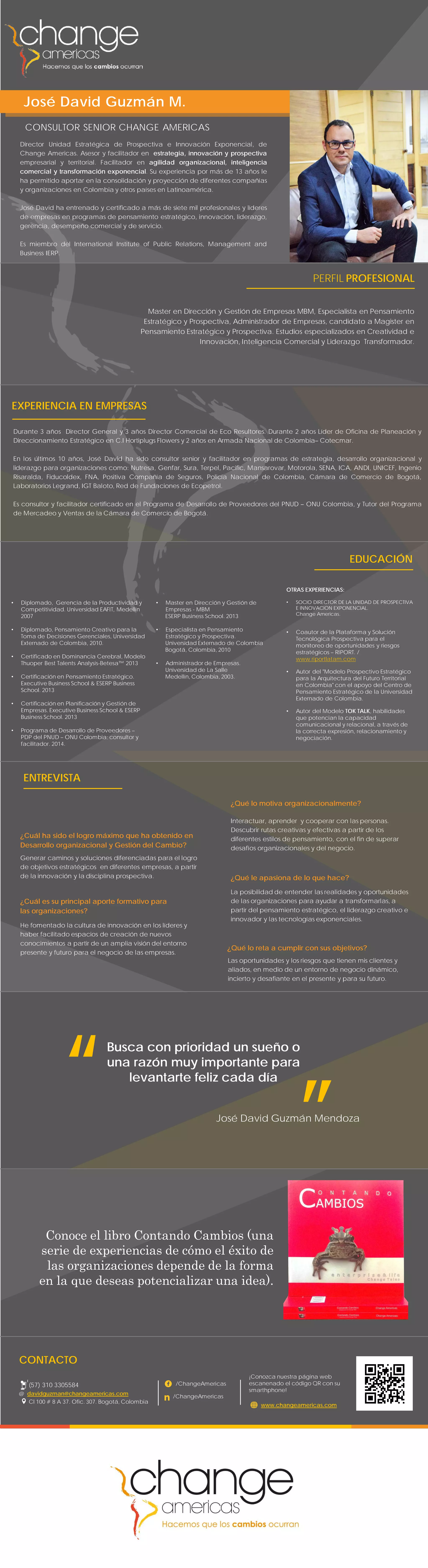 José David Guzmán Mendoza es un consultor senior en desarrollo organizacional y gestión del cambio, con más de 13 años de experiencia en la capacitación de más de siete mil profesionales en áreas como estrategia, innovación y liderazgo. Ha trabajado con reconocidas organizaciones en Colombia y Latinoamérica, y ha desarrollado modelos y soluciones tecnológicas para la gestión de oportunidades y riesgos. Posee múltiples títulos en dirección de empresas y pensamiento estratégico, y es apasionado por transformar organizaciones a través de un enfoque innovador y tecnológico.