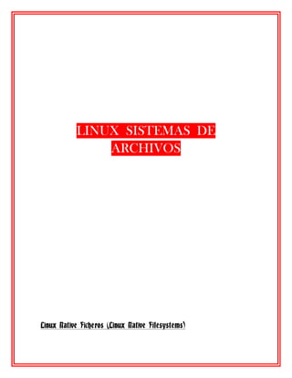 Este documento describe los diferentes sistemas de archivos nativos e internacionales que soporta Linux. Describe sistemas de archivos tradicionales como Minix y Ext2, así como sistemas más modernos como Ext3, ReiserFS, XFS y JFS. También cubre el soporte de Linux para sistemas de archivos de Microsoft como FAT, HPFS y NTFS, así como sistemas de Apple como HFS.