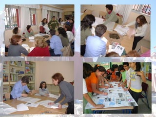 El documento describe la recreación histórica como una actividad educativa que permite representar aspectos del pasado de forma lúdica y rigurosa. Se basa en la investigación multidisciplinar de diferentes aspectos históricos como la política, economía, sociedad y vida cotidiana. Cuando se aplica en proyectos escolares, fomenta el aprendizaje cooperativo y la comprensión del patrimonio cultural, a la vez que desarrolla competencias en los estudiantes.