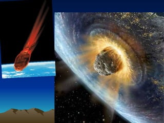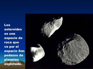 Este documento habla sobre asteroides y cómo son fragmentos de planetas explotados que vagan por el espacio. Menciona que los científicos están monitoreando de cerca un asteroide potencialmente peligroso que fue detectado recientemente y requiere más observaciones. También explica que los asteroides son rocas espaciales que a veces impactan la Tierra, como ocurrió hace 65 millones de años cuando una lluvia de asteroides causó la extinción de los dinosaurios.