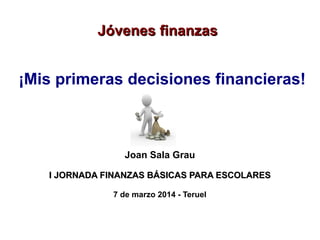 Este documento presenta una jornada sobre finanzas básicas para escolares. Explica la necesidad de incluir la educación financiera en las escuelas para que los jóvenes aprendan a administrar su dinero y tomar decisiones financieras. También destaca los errores comunes en las finanzas personales como gastar más de lo que se gana y no ahorrar. Por último, ofrece 10 recomendaciones básicas como no gastar más de lo que se ingresa y establecer metas y un plan de inversión y ahorro.