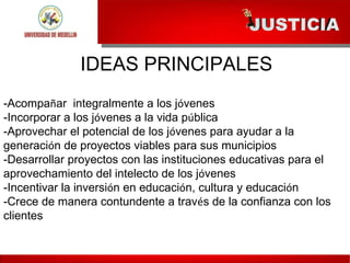 La fundación se crea para acompañar integralmente a los jóvenes de Ituango y la subregión norte de Antioquia a través de donaciones. Su objetivo es incorporar a los jóvenes en la vida pública, aprovechar su potencial para ayudar en proyectos y desarrollar proyectos con instituciones educativas.