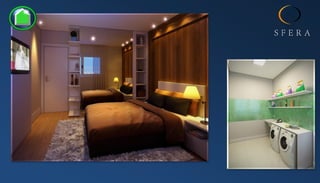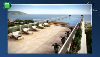 El documento describe las características de una torre de apartamentos de lujo en Santos, Brasil. La torre ofrece unidades de 2 o 3 dormitorios, algunas con suite, de entre 62 y 111 metros cuadrados. Cada unidad incluye plaza de garaje y depósito privados. Las áreas comunes incluyen una piscina infinita en la azotea, gimnasio, salón para fiestas y lavandería.