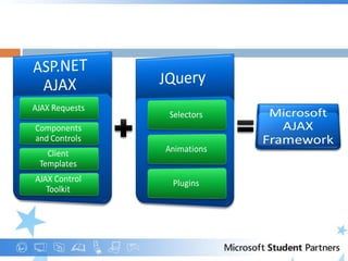 JQuery es una librería de JavaScript de código abierto que simplifica la manipulación y recorrido de documentos HTML, la gestión de eventos, las animaciones y el desarrollo AJAX. Se integra bien con ASP.NET MVC y proporciona ventajas como una sintaxis sencilla y un código más limpio y legible. El documento muestra cómo descargar e incluir JQuery, realiza demostraciones de sus funciones de arrastrar y soltar y de creación de una base de datos de películas usando JQuery con MVC.