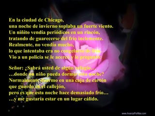 Un niño sin hogar busca refugio de la fría noche. Un policía le dice que diga "Juan 3:16" en una casa, donde una mujer amable lo alimenta, baña y acoge. Al día siguiente, la mujer le explica el significado de Juan 3:16, donde el niño acepta a Jesús como su salvador.