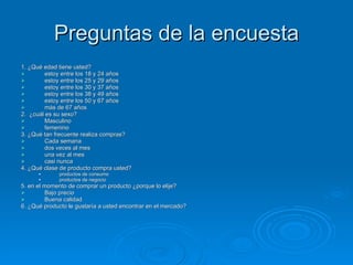El documento presenta 6 posibles nuevos productos para el mercado, incluyendo manillas estabilizadoras para el túnel carpiano, una maquina de afeitar con espuma incorporada, sensores de precio para carritos de compras, una lonchera para calentar/enfriar comida, botes de basura para reciclaje con sensores y mazamorra envasada lista para consumir. Se describen los colores, características, empaques, precios y vendedores propuestos para cada producto.
