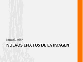 Este documento presenta nuevos efectos y herramientas de edición de imágenes para álbumes de fotos, incluyendo opciones para cambiar el tono, saturación, color, contraste, brillo y nitidez de las fotos, así como funciones para eliminar el fondo y crear diseños mediante la disposión de capas de objetos sobre diferentes fondos o la misma imagen con efectos artísticos.