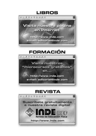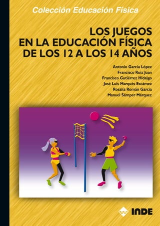 Este documento proporciona información sobre un libro titulado "Los juegos en la Educación Física de los 12 a los 14 años" que analiza las posibilidades de los juegos y propone aplicaciones prácticas ordenadas para educadores y profesionales de educación física. El documento incluye un índice del libro con cinco bloques temáticos sobre diferentes tipos de juegos y sus usos, y solicita información personal para enviar más detalles sobre publicaciones y la revista INDEref.