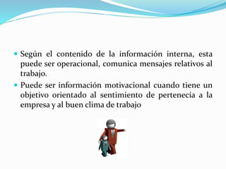 Este documento describe los diferentes tipos y direcciones de comunicación en una organización, incluyendo comunicación descendente, ascendente y lateral. También discute las ventajas y desventajas de la comunicación oral y escrita, así como estrategias efectivas para lograr una comunicación exitosa como examinar el objetivo de la comunicación y adaptar el mensaje al auditorio.