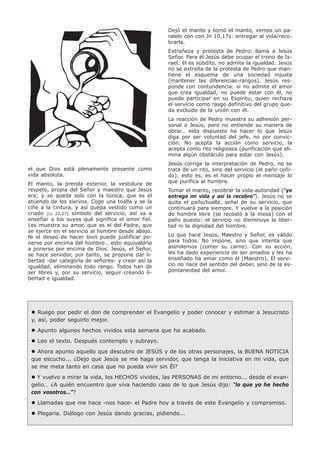 El documento presenta las lecturas para el Jueves Santo. La primera lectura es del Éxodo y habla de las prescripciones para la cena pascual. La segunda lectura es de la primera carta a los Corintios y menciona que al comer y beber la eucaristía se proclama la muerte del Señor. El evangelio es de Juan y narra cómo Jesús lava los pies de sus discípulos antes de la última cena para enseñarles sobre el servicio y el amor.