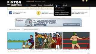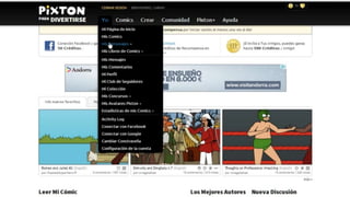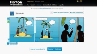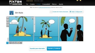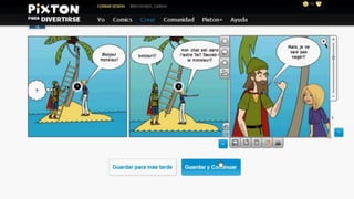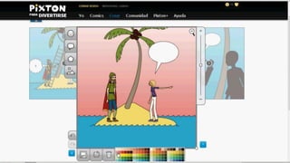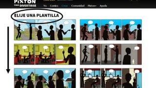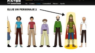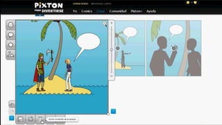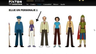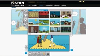 Pixton es una herramienta para crear historietas que permite a los usuarios seleccionar personajes y accesorios para construir escenas. Los usuarios pueden cargar personajes seleccionados para crear historias visuales, aunque hay un límite de personajes gratuitos y algunos elementos requieren una suscripción de pago.