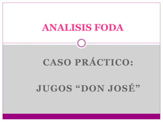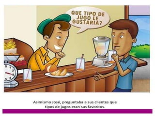 José tiene experiencia en el negocio de frutas y buenos proveedores, lo que le permite ofrecer un buen producto a bajo costo. Existe demanda por jugos naturales saludables y las personas están dispuestas a pagar por la conveniencia de no tener que prepararlos ellos mismos. Sin embargo, José enfrenta una fuerte competencia de otros negocios de comida y solo cuenta con dos empleados. Cambios en los precios de los insumos o la entrada de nuevos competidores podrían amenazar la rentabilidad de su negocio.