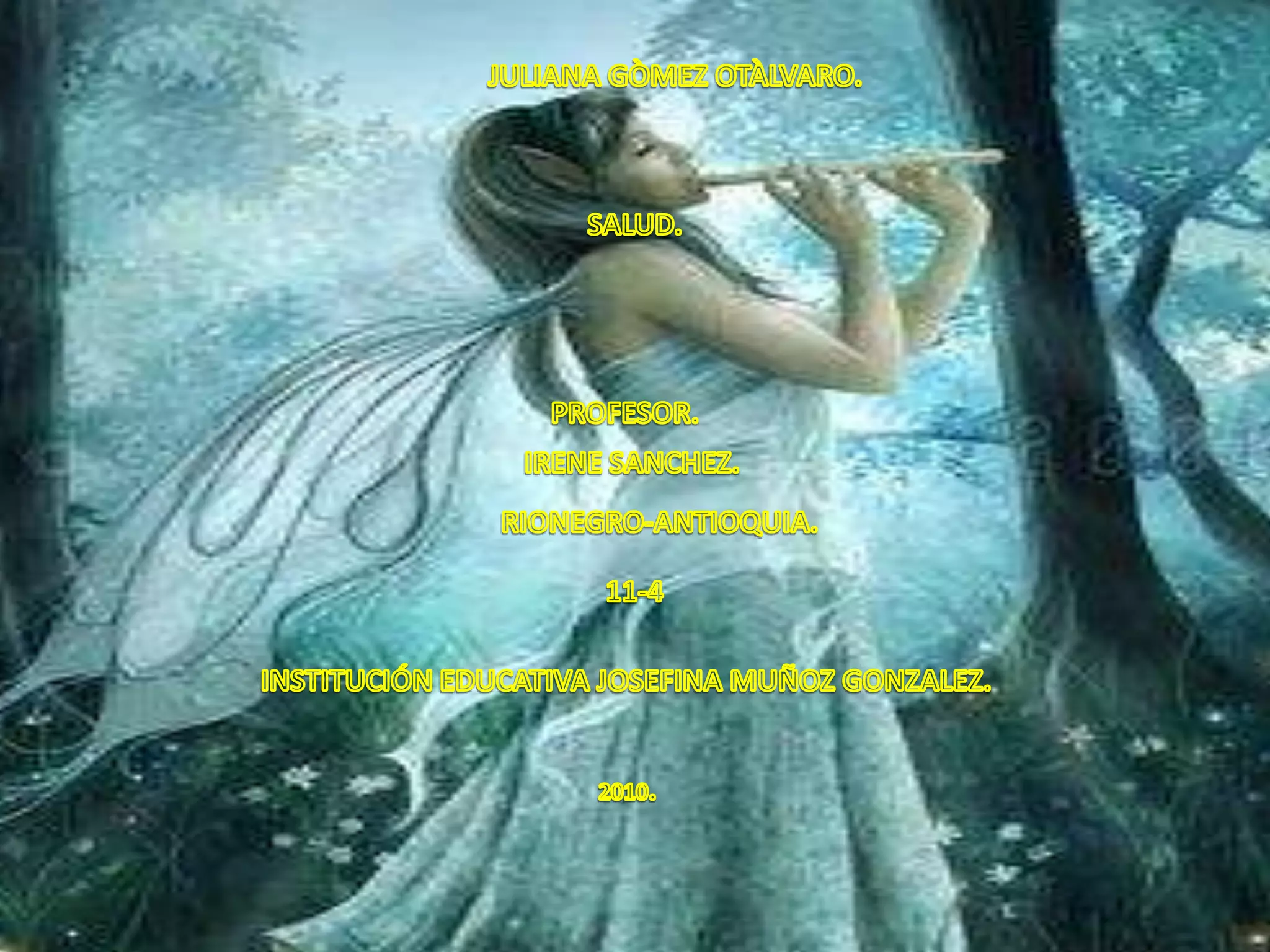 Este documento presenta información básica sobre Juliana Gómez Otálvaro, incluyendo su profesión como profesora y su lugar de origen en Rionegro, Antioquia. También menciona la Institución Educativa Josefina Muñoz González y el año 2010.
