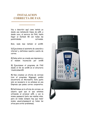 El documento proporciona instrucciones para instalar y configurar varios dispositivos, incluidos fax, dispositivos USB, video beam, impresoras y diademas inalámbricas. Explica los pasos para instalar el servicio de fax en Windows 98, conectar e instalar dispositivos USB, instalar y usar un video beam, instalar una impresora e instalar y usar diademas inalámbricas para centros de llamadas.