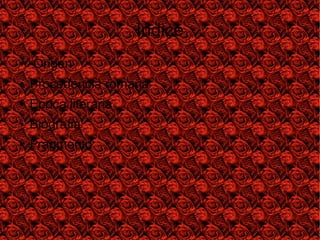 Julio César fue un líder militar y político romano de la época tardorrepublicana que nació en Roma en el 100 a.C. Perteneció a la edad de oro de la literatura romana entre los siglos I a.C. y I d.C. A lo largo de su biografía, destacó como general victorioso en sus campañas militares y llegó a dictador vitalicio, pero fue asesinado en el senado por sus ambiciones de poder que amenazaban a la República.