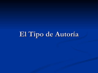 Tipo de Autoría1. El Concepto Unitario de Autor La teoría del concepto unitario de autor señala que no es posible o no es conveniente distinguir entre autoría y participación, sino que todo sujeto que interviene en un hecho debe ser considerado autor del mismo.
