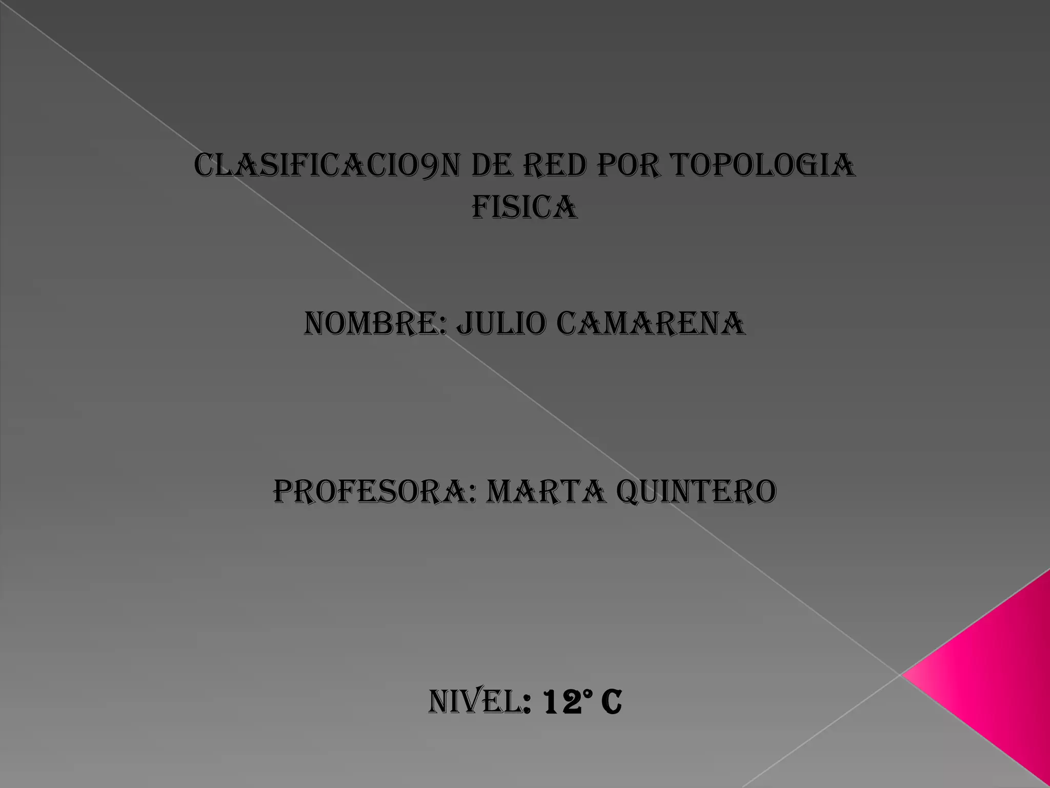 El documento clasifica las topologías físicas de red en cinco tipos: de bus, de estrella, de anillo, de árbol y de malla. Define la topología de red como la cadena de comunicación usada por los computadores de una red para intercambiar datos, y explica que una red se compone de nodos interconectados, donde un nodo es el punto donde una curva se intercepta a sí misma y puede representar diferentes elementos dependiendo del tipo de red.