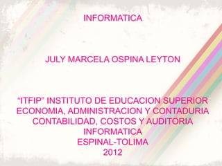 Este documento describe diferentes herramientas informáticas como Word, Excel, Access, PowerPoint, Outlook, Publisher, Infopath, Visio, Project, AccountingExpress y OneNote. Explica brevemente sus usos principales como crear y editar documentos, hojas de cálculo, bases de datos, presentaciones, correo electrónico, publicaciones, flujos de trabajo y notas. También incluye una bibliografía de enlaces sobre cada programa.