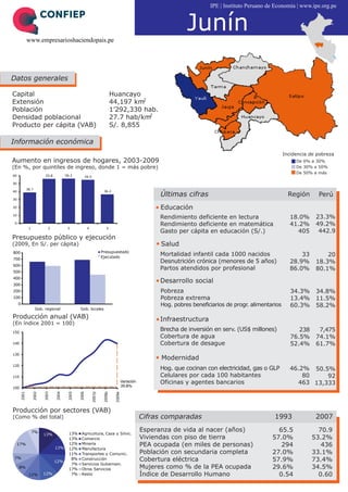 La región de Junín tiene una población de aproximadamente 1,3 millones de habitantes. Su economía se basa principalmente en la agricultura, el comercio y la minería. Los niveles de pobreza son altos, con alrededor de un 34% de la población viviendo en la pobreza. La región también enfrenta desafíos en educación, salud e infraestructura.