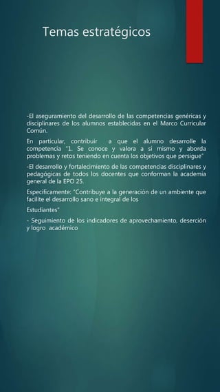 El resumen describe una jornada de acompañamiento en una preparatoria donde se discutieron tres temas principales: 1) el desarrollo de competencias en los estudiantes, 2) el fortalecimiento de competencias en los docentes, y 3) el seguimiento de indicadores académicos. Se presentaron los logros de estudiantes en olimpiadas y se acordó continuar apoyando a estudiantes con bajo rendimiento a través de tutorías. Expertos externos capacitaron a docentes sobre detección de riesgo de suicidio. Se revis