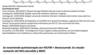 Este documento presenta los resúmenes médicos de varios pacientes con cáncer. El primer paciente es un hombre de 63 años diagnosticado con carcinoma de recto y trombosis venosa profunda. Otro paciente es una mujer de 72 años con tumor neuroendocrino grado 2 que se le recomienda tratamiento con Lutécio-177. Un tercer paciente es un hombre de 81 años diagnosticado con carcinoma de colon con metástasis hepáticas.