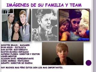 Justin Bieber nació en 1994 en Canadá. Aprendió a tocar varios instrumentos musicales desde una edad temprana. Fue descubierto en 2007 cantando en YouTube y firmó con un sello discográfico. Ha lanzado varios álbumes exitosos desde 2009 y ha recibido varios premios Grammy. Realizó su primer concierto en Chile en 2011.