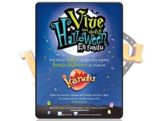 Kandu es un parque de entretenimiento infantil y familiar ubicado en Medellín que ofrece una experiencia educativa y de diversión a través de más de 20 atracciones con juegos de roles. El parque busca integrar entretenimiento y educación para niños y sus familias mediante actividades que desarrollan valores y habilidades en los niños. Kandu se posiciona como una opción innovadora en el mercado gracias a sus espacios y propuestas diferenciadas.