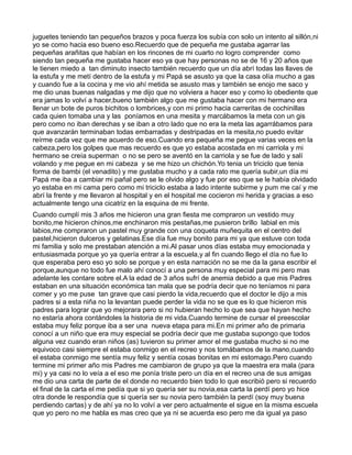Este documento resume momentos de la infancia y vida escolar de la autora, incluyendo recuerdos de jugar con insectos y animales, caídas que resultaron en heridas, su primer amor en la primaria, y amigos cercanos que ha tenido a lo largo de los años. También describe brevemente su familia y personalidad.