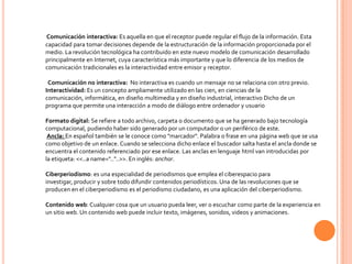 La comunicación interactiva permite al receptor regular el flujo de información y tomar decisiones sobre la estructura de la información proporcionada por el medio. La característica más importante de la comunicación interactiva desarrollada principalmente en Internet es la interactividad entre emisor y receptor, lo que la diferencia de los medios de comunicación tradicionales.
