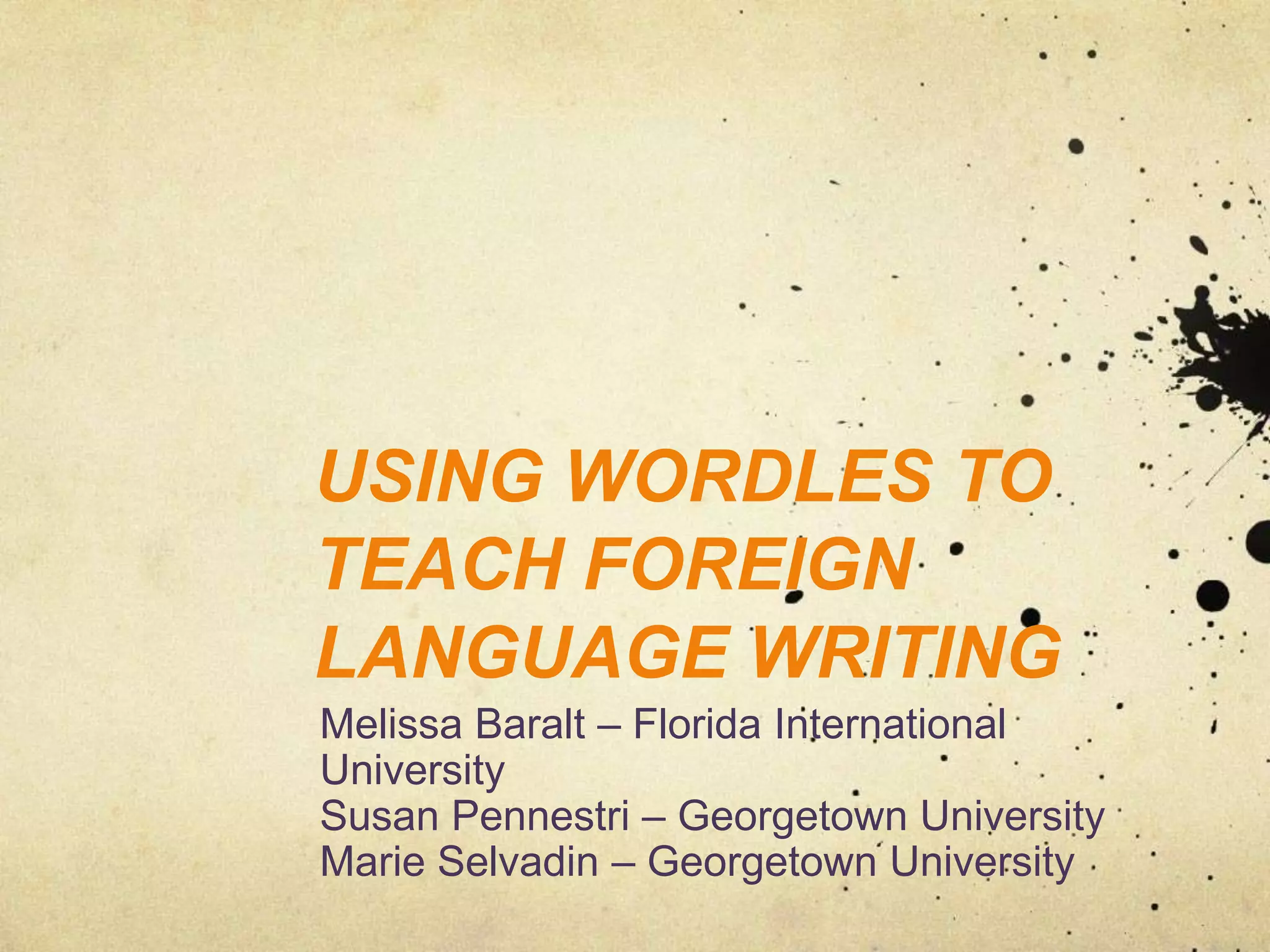 Este documento describe cómo usar Wordles para enseñar la escritura en lenguas extranjeras. Los Wordles visualizan la frecuencia de palabras en un texto mediante tamaños de fuente variables. Un estudio piloto encontró que los estudiantes mejoraron su vocabulario y produjeron escritos más largos al discutir Wordles de sus borradores. Los estudiantes también pensaron que los Wordles hicieron los talleres de escritura más interesantes.