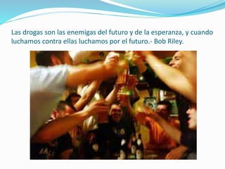 Las drogas son enemigas del futuro y la esperanza, y luchar contra ellas es luchar por el futuro. No necesitas drogas para disfrutar de la vida, y si las necesitas, es porque aún no has encontrado actividades sanas que te hagan disfrutar. Los niños a menudo son víctimas silenciosas del abuso de drogas. Es mejor dejar las drogas para alcanzar tus sueños, construir una vida sana con esperanza y alegría, y darte cuenta de que puedes lograr grandes cosas sin ellas.
