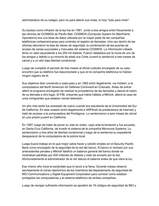 Kevin Mitnick fue un "cracker" conocido por invadir sistemas de computadoras y redes telefónicas de manera ilegal. Comenzó en la década de 1980 cuando tenía 16 años y fue arrestado varias veces por delitos relacionados con computadoras. En 1995 fue capturado luego de que el experto en seguridad Tsutomu Shimomura lo rastreara tras la invasión de su computadora personal.