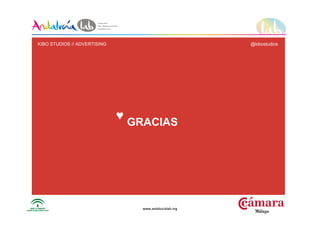 Kibo Studios es una empresa dedicada al desarrollo de ideas y tecnología innovadora, con 17 años de experiencia en el diseño web y marketing. El documento menciona su enfoque en la adaptabilidad y la evolución tecnológica, así como su compromiso con la calidad y la innovación en sus proyectos. También se destaca su labor en la creación de soluciones tecnológicas, como las Google Glass, y su visión sobre el futuro de las comunicaciones y el entretenimiento.